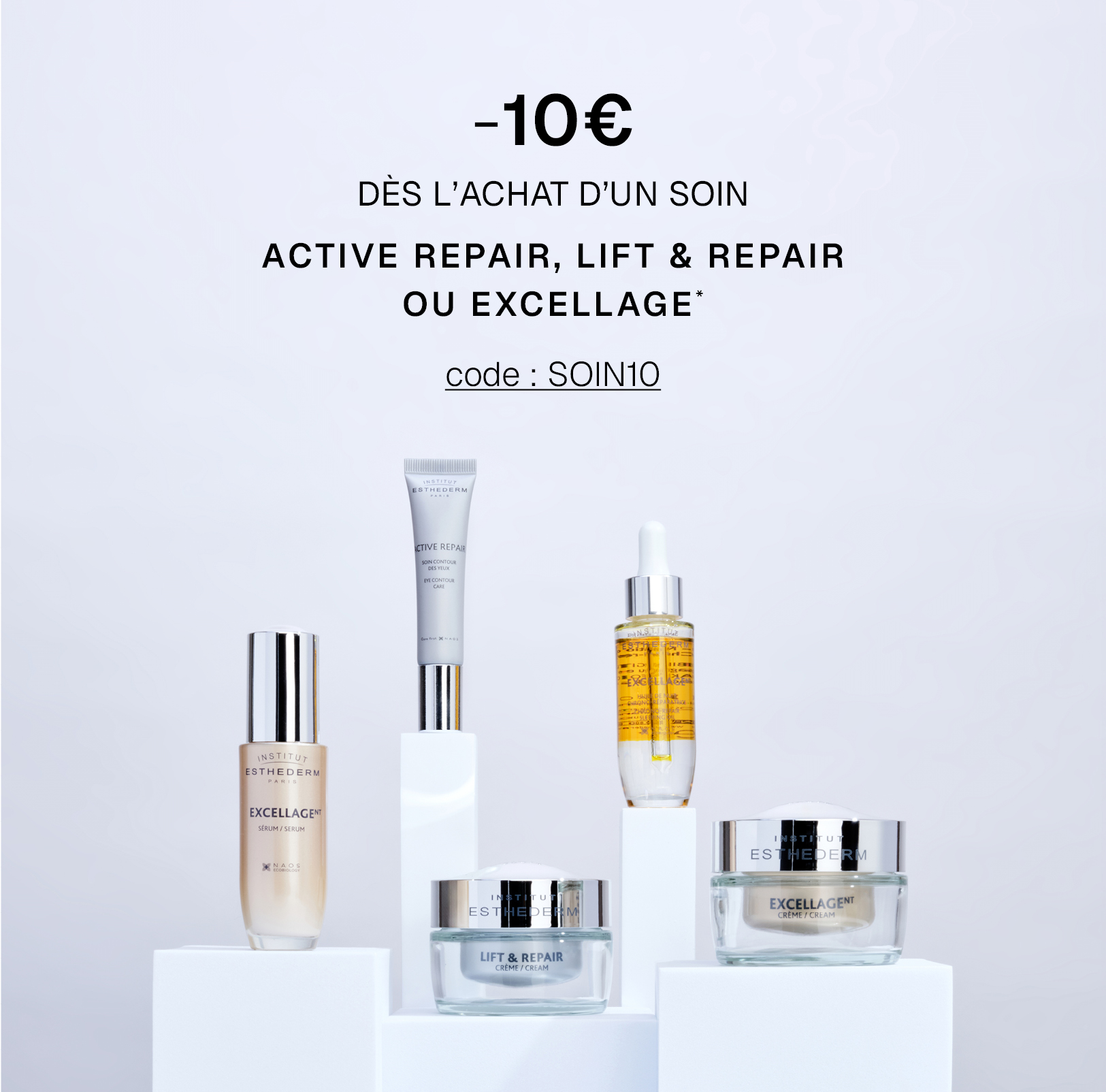 -10€ dès 1 soin acheté sur les gammes : ACTIVE REPAIR, LIFT&REPAIR et EXCELLAGE.